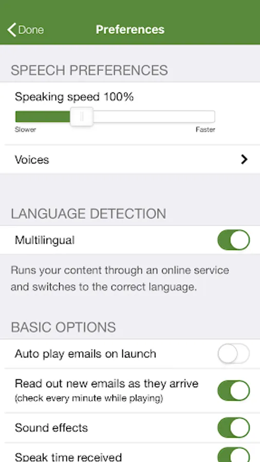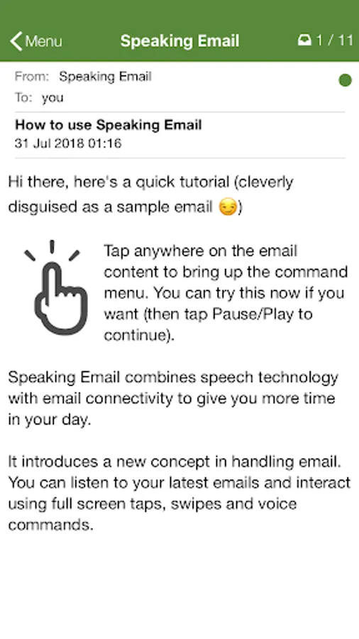 Smart content detection skips over disclaimers, reply headers, and email signatures to speak only the content without the clutter.
