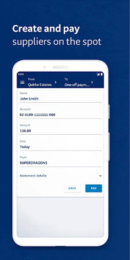 • Create and authorise one off payments to any domestic bank account including to most credit cards