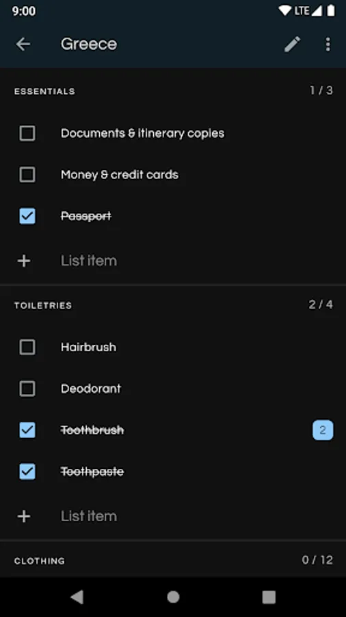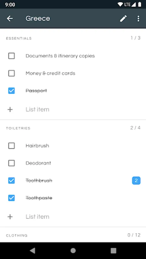 Add your own categories and packing lists, then sort, edit and remove items as you go.