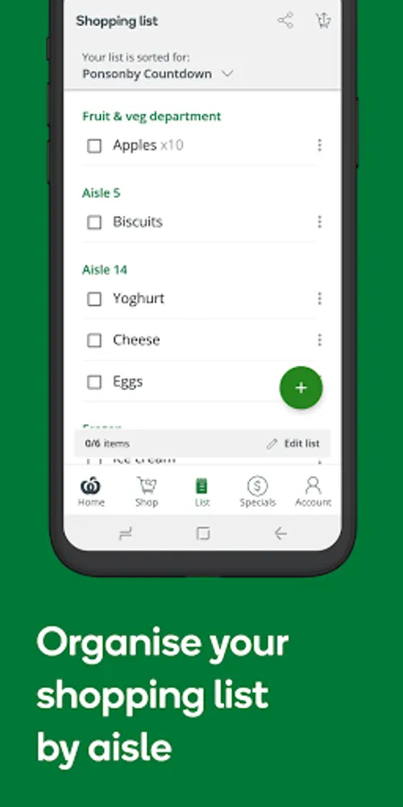 Create and manage your shopping list on the go and check items off as you shop in-store. Even better, your list is organised to help you shop faster at your local Countdown store. You can also send your list to our online shopping website or share it with family, friends or flatmates.