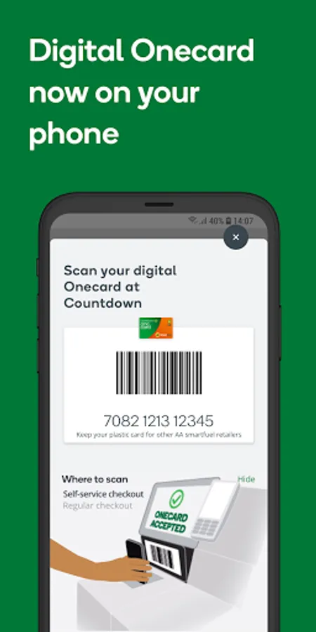 Your Onecard is now available on the app as a digital card for you to easily scan when you're in-store — no more carrying it around in your wallet. You can also view your Onecard balance in real-time and track your progress, whether you’re registered to earn Onecard points towards e-vouchers or AA Smartfuel discounts.