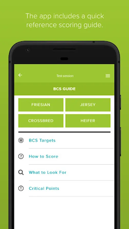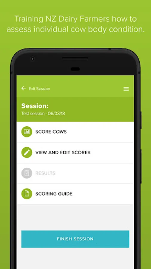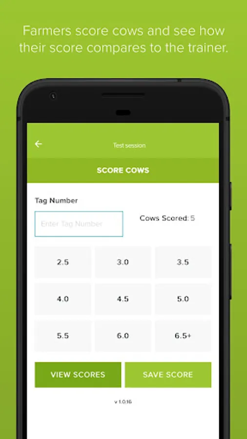 This app is designed to assist Certified Body Condition Score Assessors calibrate their scoring of cows in the field. It demonstrates how they can flag cows that require attention, record tag numbers and view previous scores. It will calibrate their score against their trainers score and indicate how accurate they are.