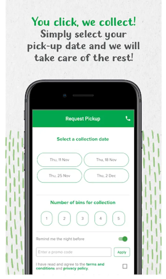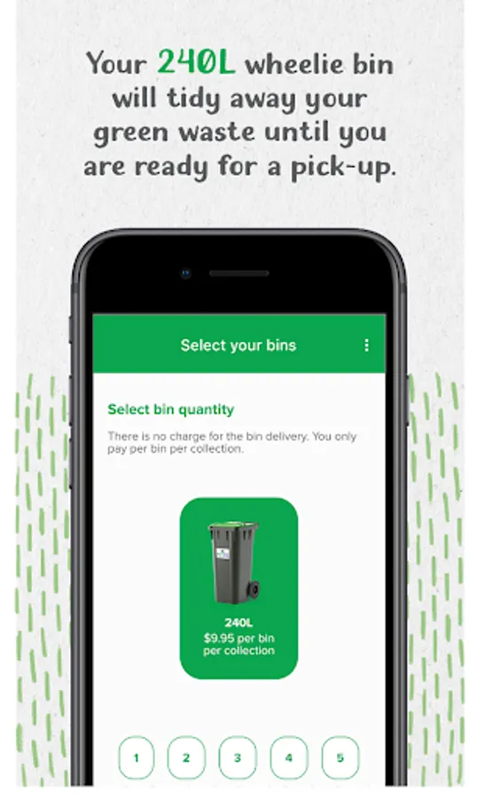 Your 240L wheelie bin will store your green waste until you’re ready for it to be emptied. Once it is fill, simply use the app to select your pick-up date, put your wheelie bin on the kerbside before 7.00am on your chosen day, and we'll take care of the rest!