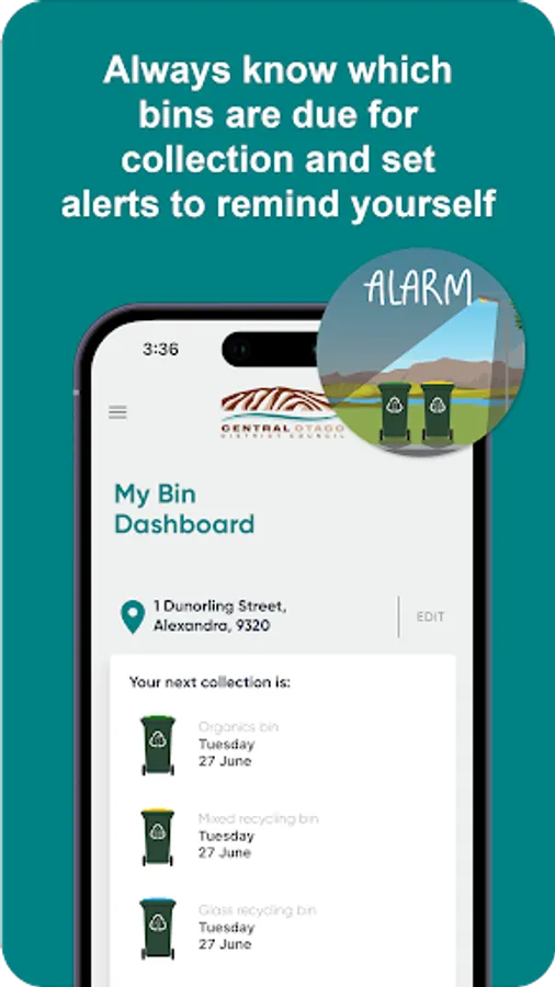 If you’re looking for everything related to kerbside collections in Central Otago District, the CODC Bin App will be your ideal starting point. With the click of a few buttons, check out which bins go out and when, what can be accepted in each bin, report a missed collection, request new, additional or replacement bins and repairs among other easy to use features. Never miss another collection by setting an alert to remind you each week.