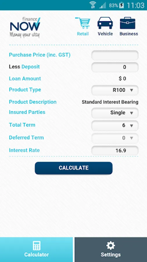 The Finance Now Retail Loan Calculator is a simple and easy app that calculates weekly installments for your customers