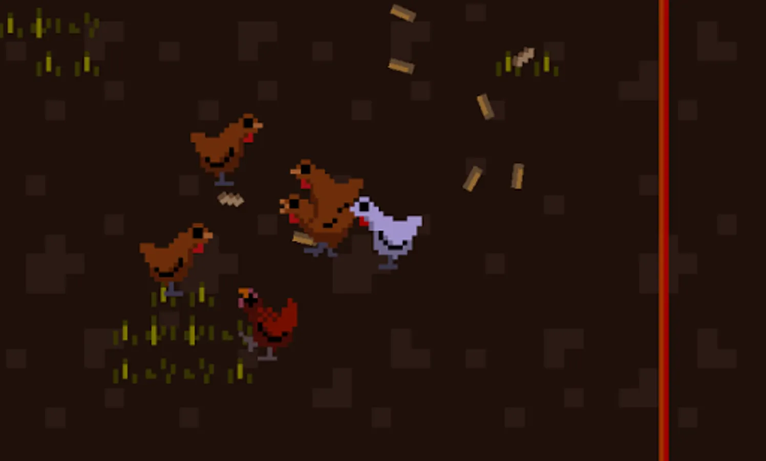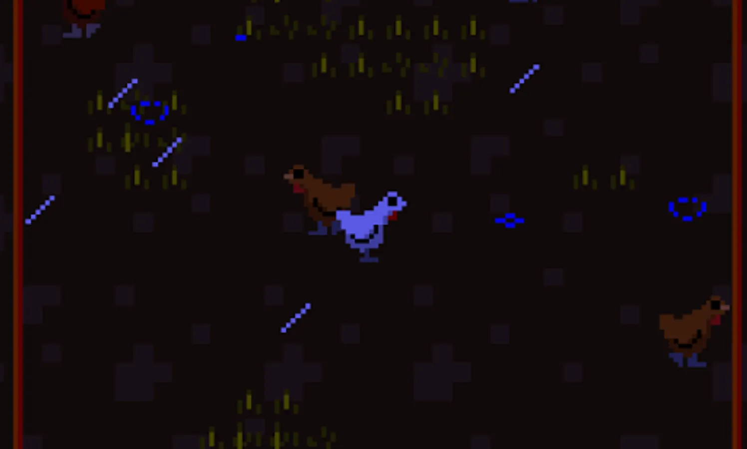 You are a chicken. You lay an egg every day (you can lay the egg anywhere). Sometimes it rains, and you can try to escape from the run when someone is walking in to bring you food. That is the whole game, more or less.