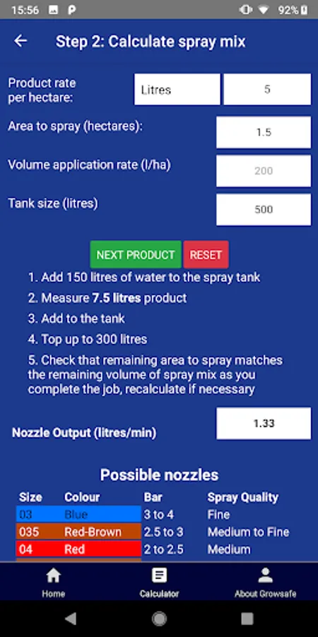 A tool to calculate and suggest a nozzle size and calculate how much agrichemical product you need to add to your spray tank or tanks to achieve target application rate with a boom type sprayer.