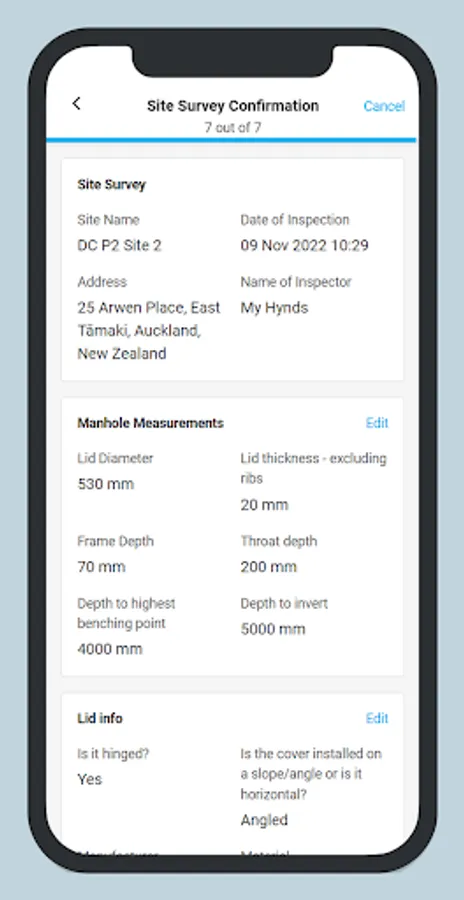 Hynds Aquanect App is a service tool for site survey and onboarding of the Hynds Smarterwater® Manhole Sensors. This tool provides clients with a simple step by step set of instructions for the dimensional data which is used to configure each location. This includes depth to bench, depth to invert, throat length, opening size, cover type and signal strength when used in conjunction with the signal strength test device.