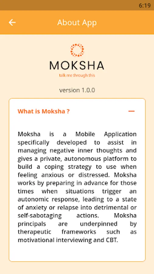 Moksha is an app specifically developed to be your back pocket tool ready to use when unavoidable or unpredictable situations or events trigger self-sabotaging actions.