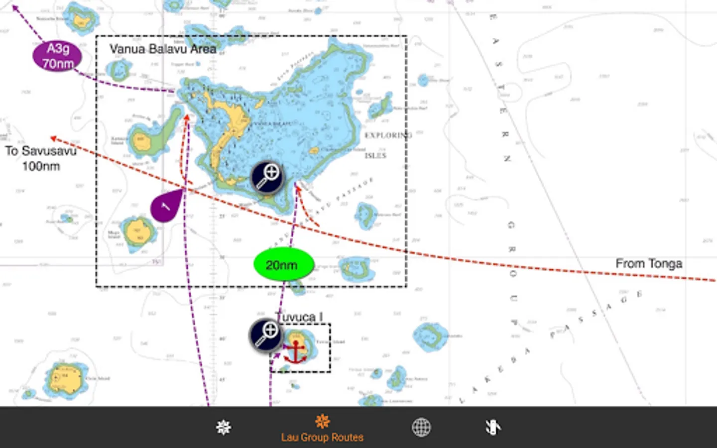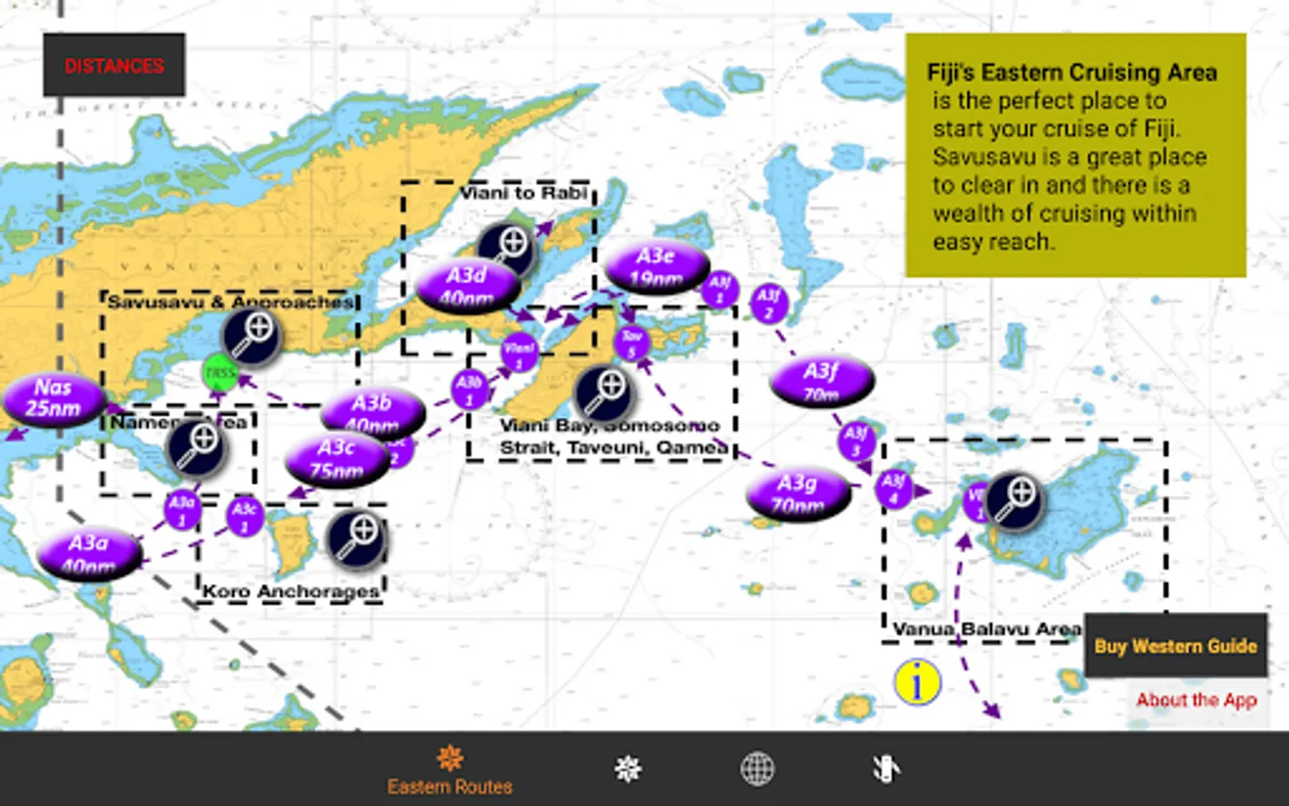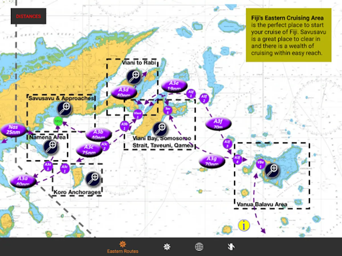 Now including extensive Information for cruising the recently opened Southern Lau Group, this interactive Cruising Guide is designed to optimize the experience of cruisers – under sail or power – visiting the Eastern Waters of Fiji, without the need for an Internet connection. Cruise with confidence using our detailed waypoints for all the major routes in the area, large-scale anchorage charts and local tips and tricks, all based on experienced local knowledge and backed by the resources of the Island Cruising Association (NZ).