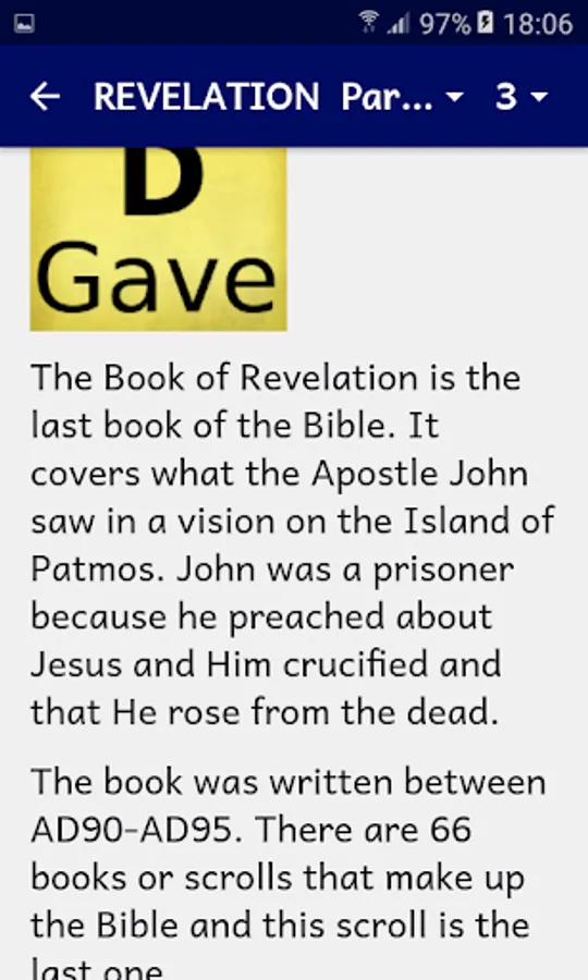 This fee app uses a timeline approach to telling the story of the book of Revelation.