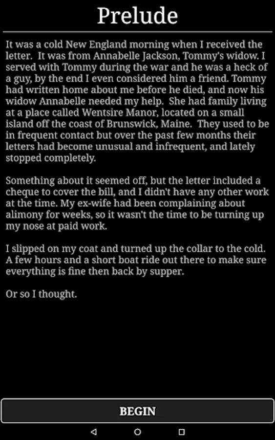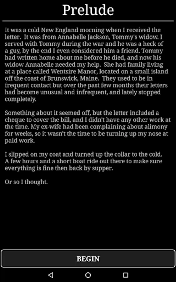 If you enjoyed this part, the adventure continues in the sequel, Horror at Innsport. Available now on Google Play: https://play.google.com/store/apps/details?id=nz.co.karmicshift.horror2a