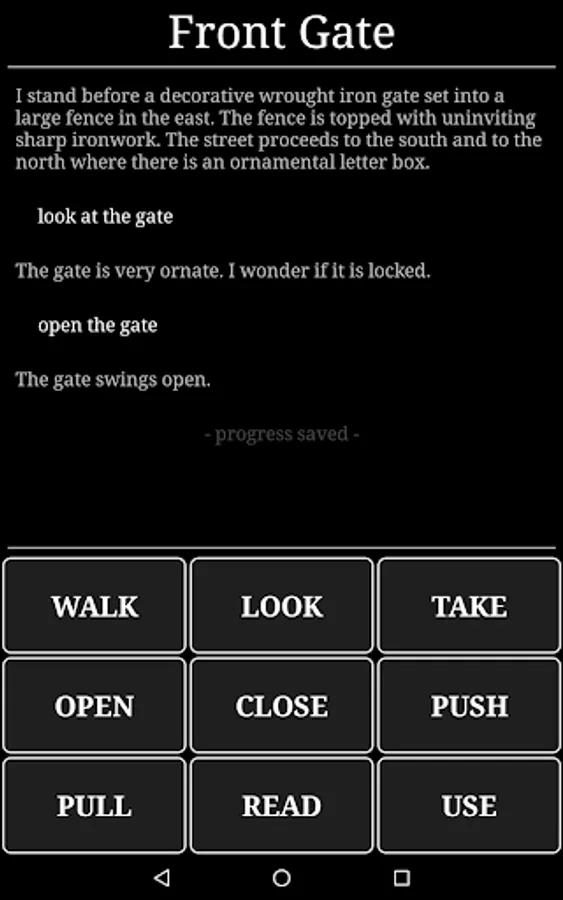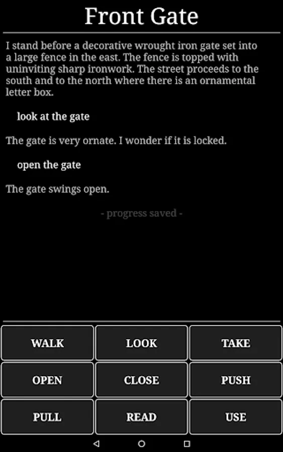Horror in the Darkness is a short exploration and puzzle solving adventure game inspired by the works of H.P. Lovecraft, where players explore and investigate, putting together clues and solve puzzles to uncover the secrets of Wentsire Manor. It is a mobile phone adaption of the classic text-based adventure genre, similar to the point-and-click classics. The game combines a bleak environment and an sense of underlying dread with moments of comedy to keep you entertained.