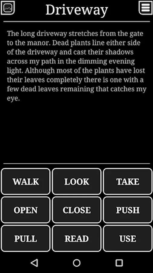 Horror in the Darkness is a short exploration and puzzle solving adventure game inspired by the works of H.P. Lovecraft, where players explore and investigate, putting together clues and solve puzzles to uncover the secrets of Wentsire Manor. It is a mobile phone adaption of the classic text-based adventure genre, similar to the point-and-click classics. The game combines a bleak environment and an sense of underlying dread with moments of comedy to keep you entertained.