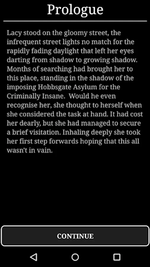 Madness at Hobbsgate is an exploration adventure game inspired by the works of Lovecraft, where players explore and investigate a large open world map, progressing though an engaging and exciting story. It is a mobile phone adaption of the classic text-based adventure genre, similar to the point-and-click classics. The game combines a bleak environment, an sense of underlying dread, and several moments of comedy to keep you entertained.
