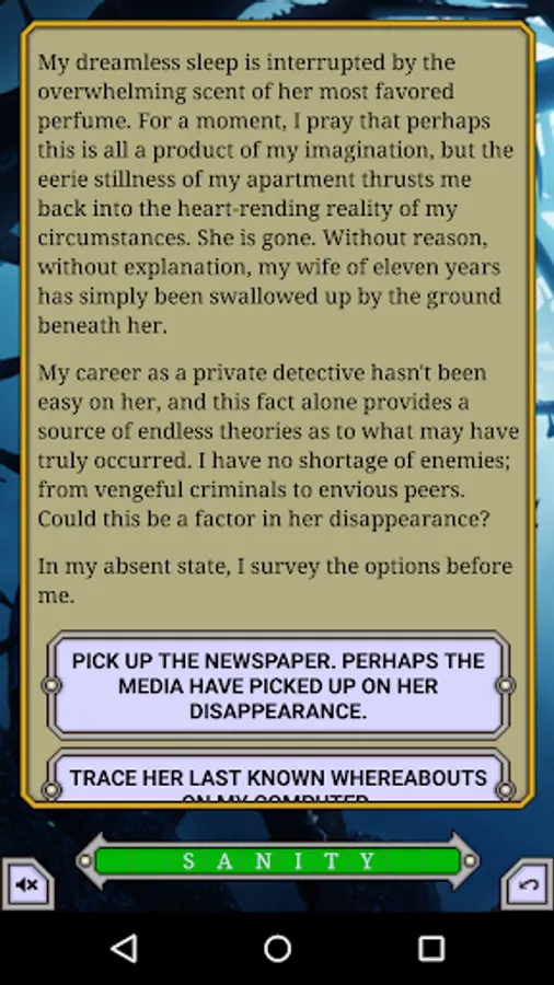 As a private detective in the backwater town of Logslow, you are no stranger to unexplained occurrences. However, when you wake up to discover that your wife has vanished off the face of the earth, you must embark on your most personal investigation to date.