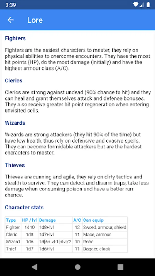 • Four playable characters (cleric, fighter, thief and wizard)