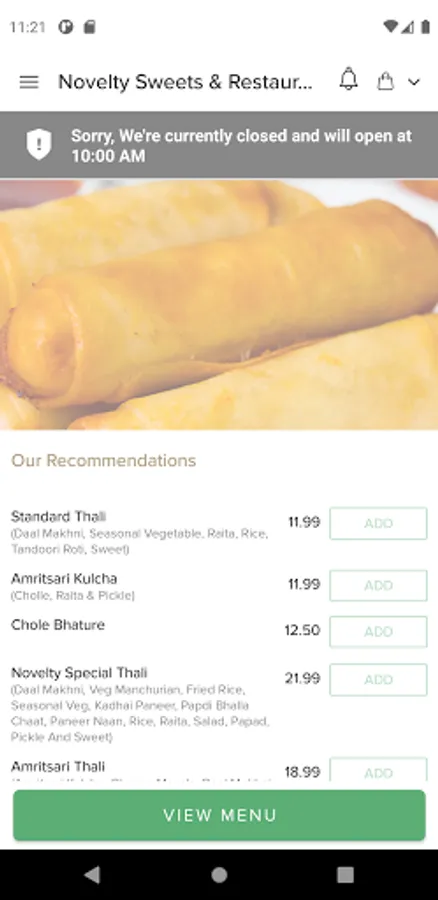 Here at Novelty Sweets & Restaurant in Sydenham, we serve a variety of food such as naan, tandoori, momos, thali, etc.