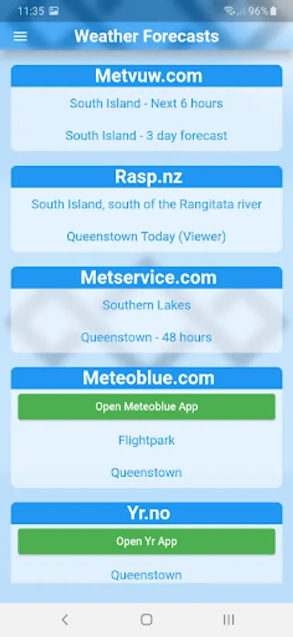 This app provides access to the Infinity Paragliding (New Zealand) student and instructor web portal, takeoff and landing site, weather forecasts and weather stations, used in the school.