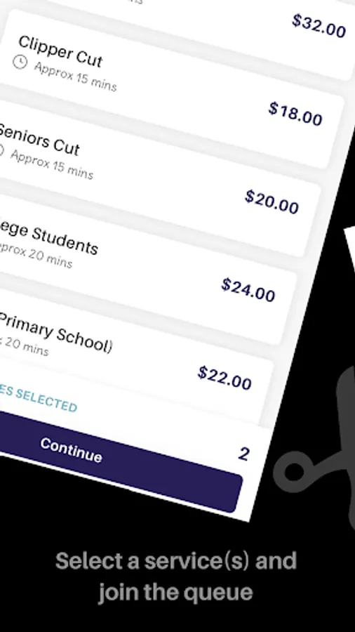It’s super easy to use, select your Barbershop, choose a barber, select a service or services and join the queue.