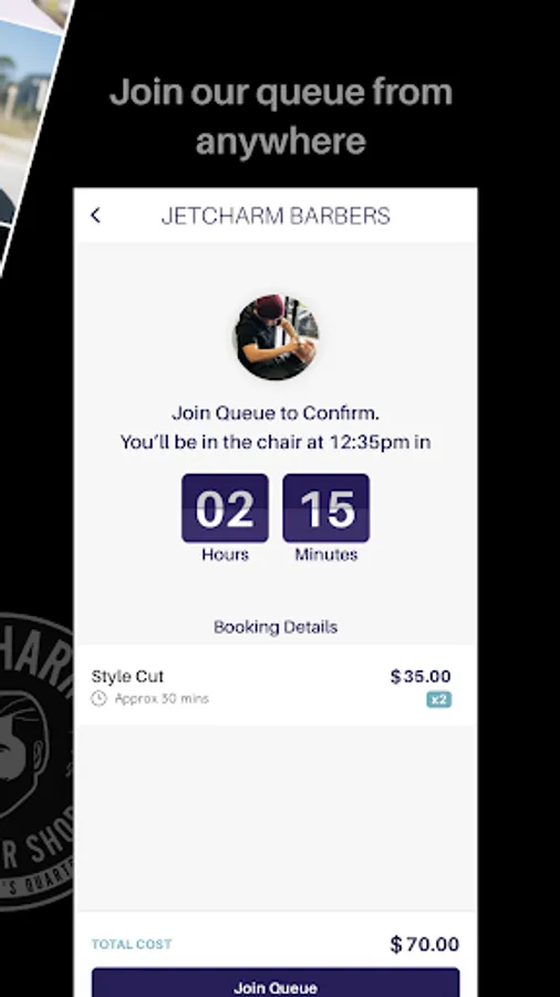 It’s super easy to use, choose a barber, select a service or services and join the queue.