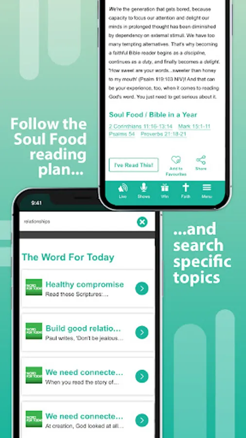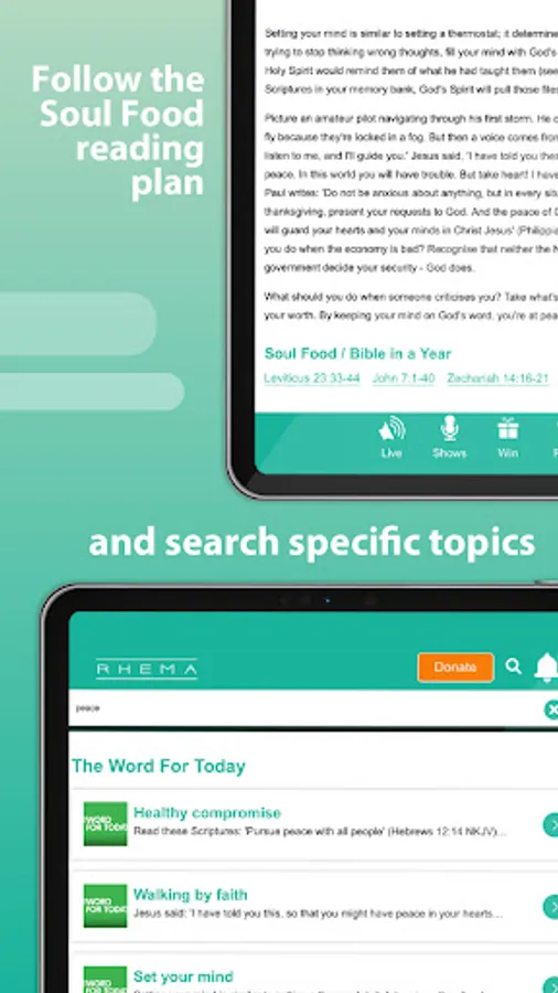 - Devotionals - Get The Word For Today, mark the readings that you’ve read and search by topic