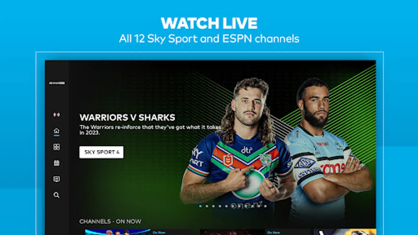 Sky Sport Now gives you streaming access to 12 Sky Sport and ESPN channels. With Sky Sport Now you can stream the live sports action you love online and on the go, as well as a huge range of on-demand content, highlights, stats and more!