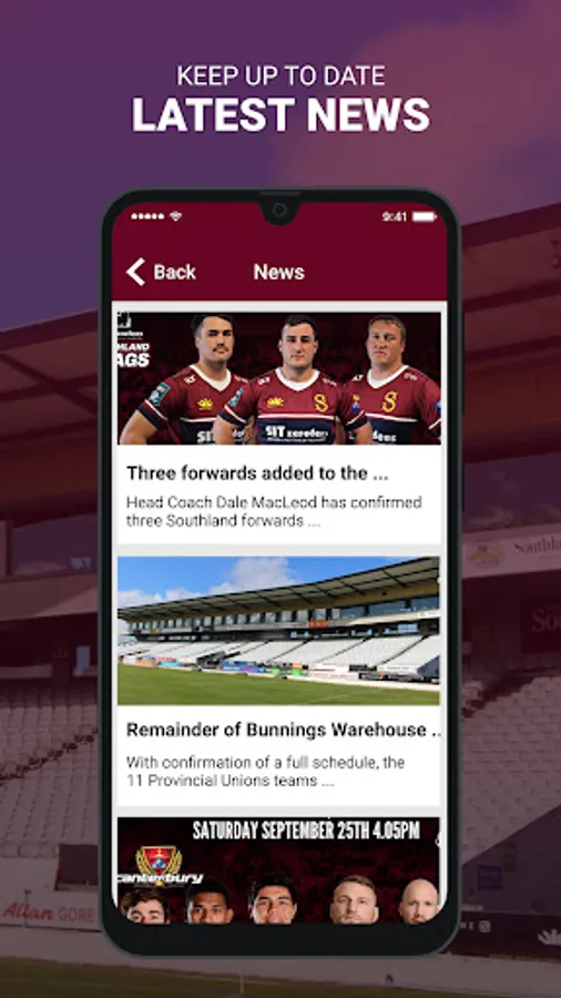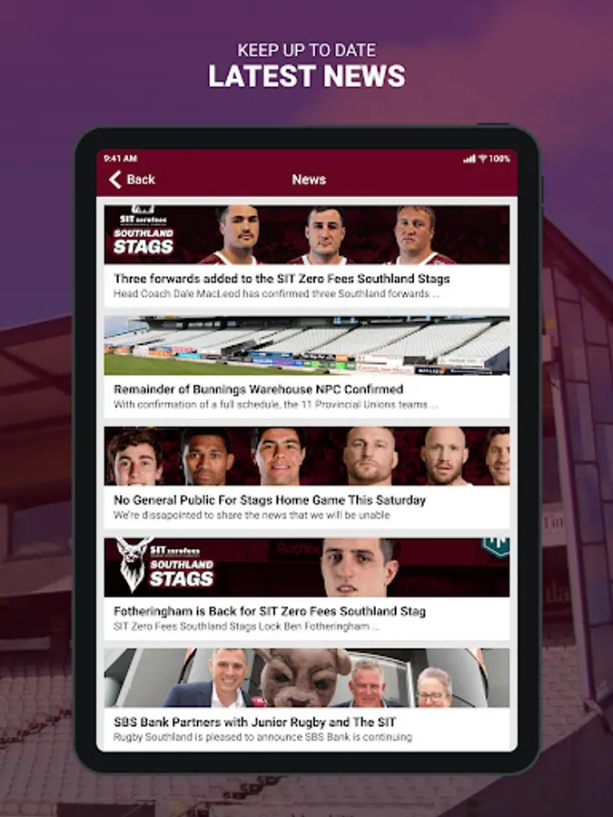The official App for Rugby Southland & Southland Stags. Featuring news, important links and Push Notifications to keep you up to date with the action happening on and off the field.