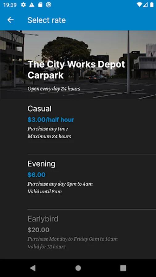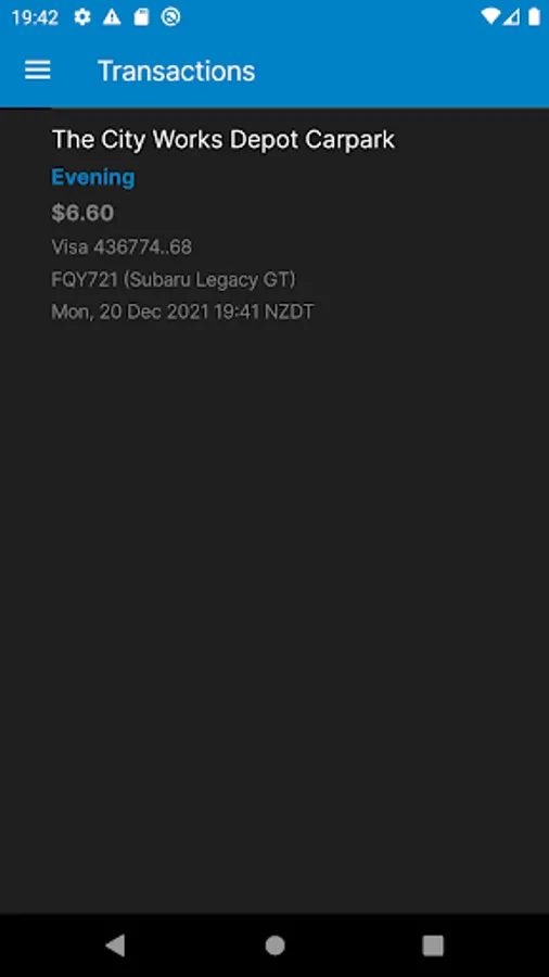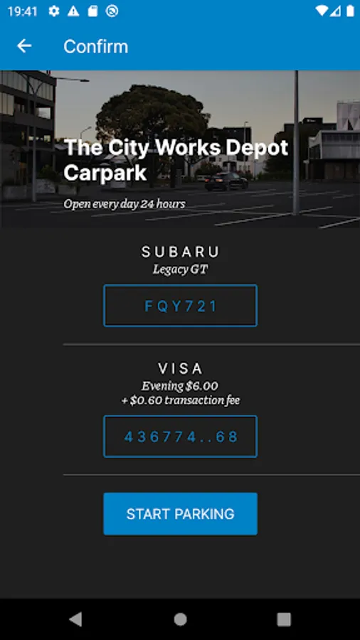 Purchase parking at Tournament carparks from the convenience of your own vehicle. T-Park knows which carpark you are in and presents all the currently available rates. Your last vehicle and payment card are remembered but you can add others on the fly. Both Start/Stop and fixed rate parking is available.