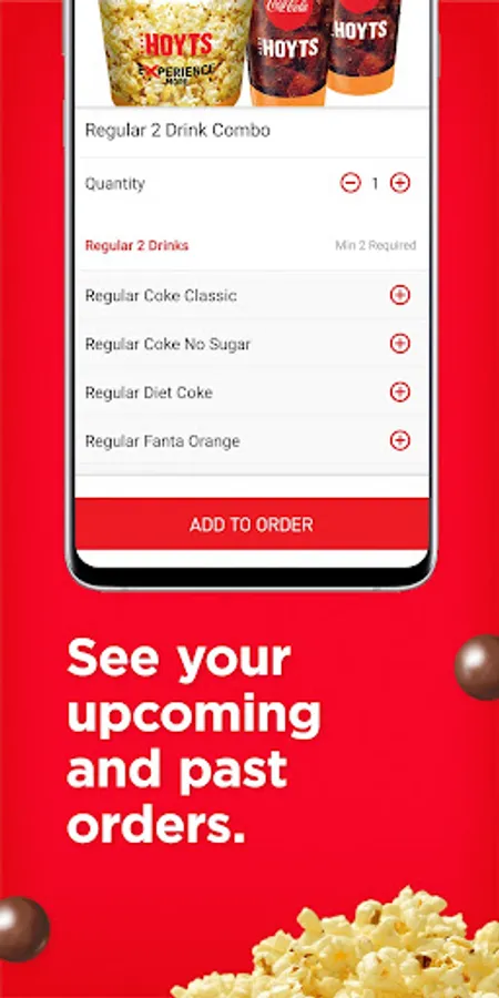 • Order food and drink from an extensive menu via the HOYTS App as part of your booking or order food and drink separately