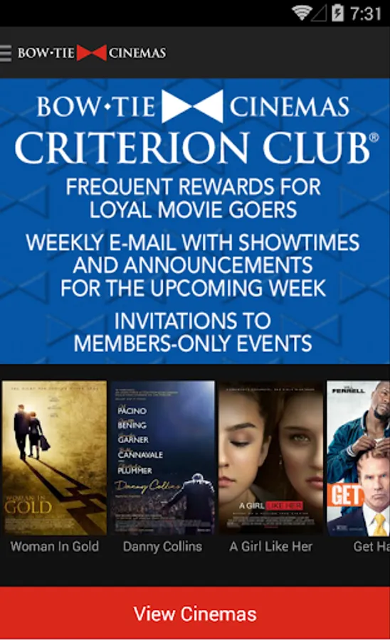 Since 1900, Bow Tie Cinemas has been a family owned destination for great movies and loyal customers. Dedicated to service, we’re proud to offer the FREE Bow Tie Cinemas Android App!