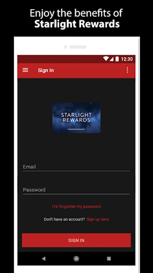 Simply log in to the app with your Starlight Rewards details to earn points on your purchases. Or sign up for an account right in the app!