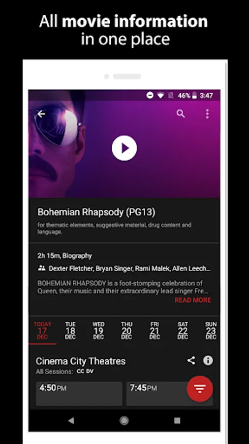 Find out where and when the movie you want to see is showing, using date and cinema filters.