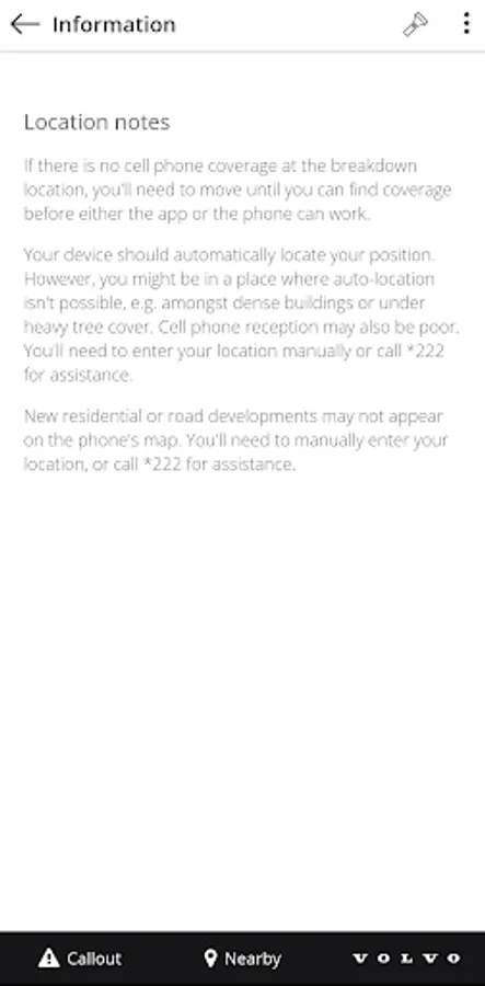 To use the Volvo Roadside Assistance app you need to be in New Zealand and registered for the Volvo Roadside Assistance Program.