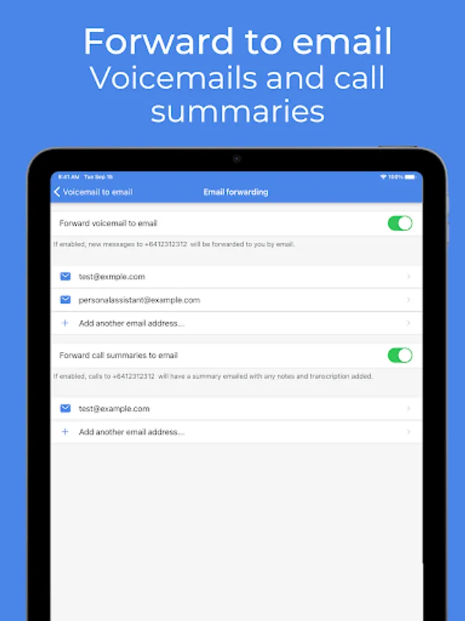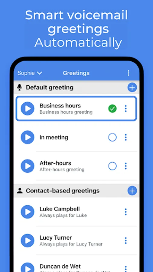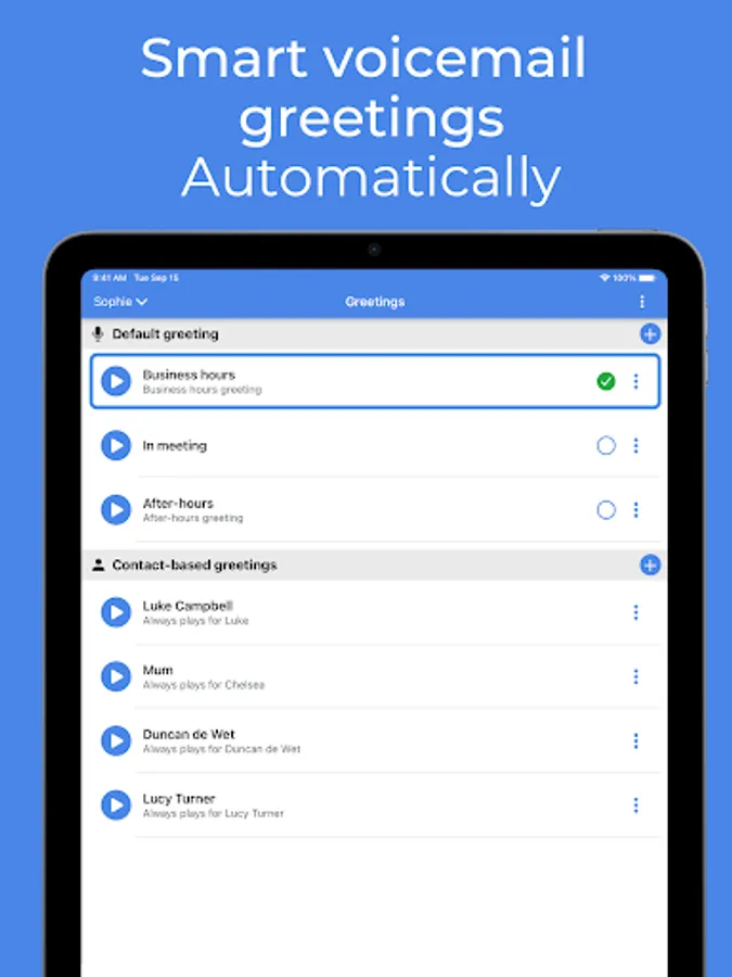 - Smart voicemail greetings that change depending on time/day, caller ID, and more