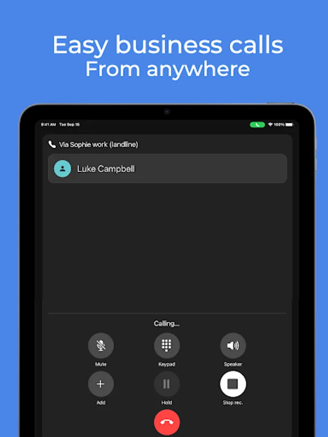 - Effortlessly make, receive and record calls with your business number from anywhere