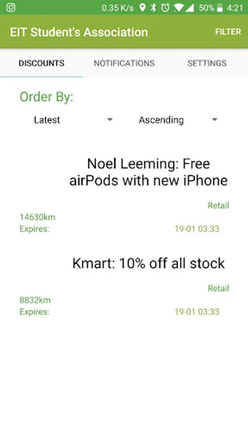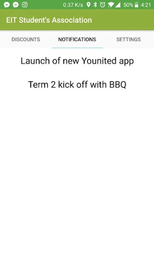 Enjoy the latest news that the EIT Student Association "Younited" has for you. Younited negotiates discounts for their students at local stores. Current and upcoming discounts become available in this app. You can easily sort the list of discounts by 'distance', 'newest', or 'category'. For example, you can have the nearest store with a discount at the top of your list when you are in town. Other important news from Younited will pop up as notifications to support you as a student at EIT.