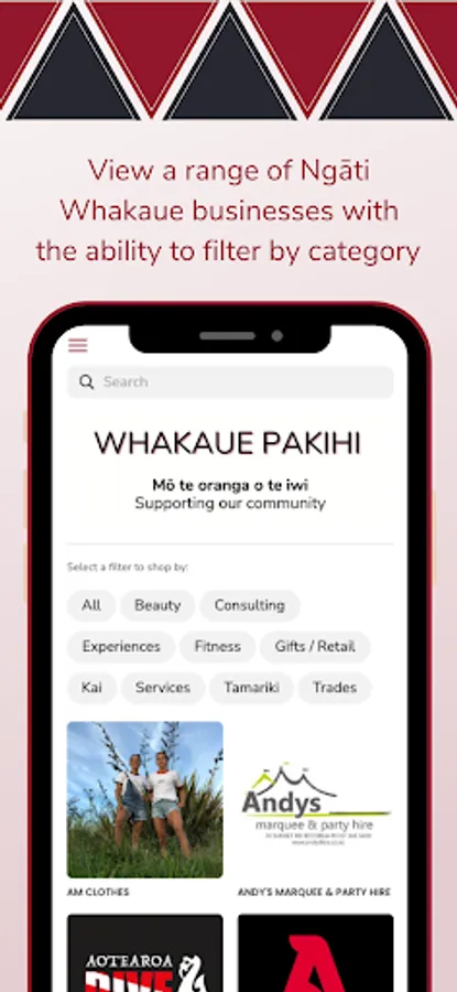 We’ve created ‘Whakaue Pakihi to be a one-stop shop to support Ngāti Whakaue businesses. From beauty to kai, from wharepakari tinana to electricians and best of all – high quality gifts for all of the whānau. ‘Whakaue Pakihi is your go-to app for supporting Ngāti Whakaue first – mō te painga o te hāpori.