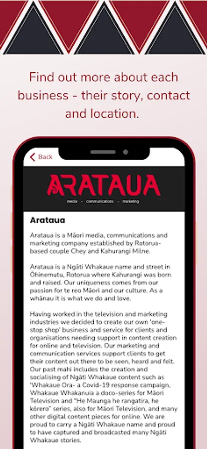 ‘Whakaue Pakihi is a listing app where you can easily find key details for each Pakihi (business) and scroll through their amazing products and services.