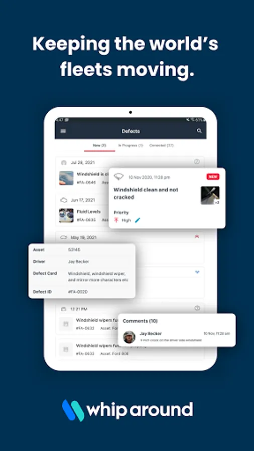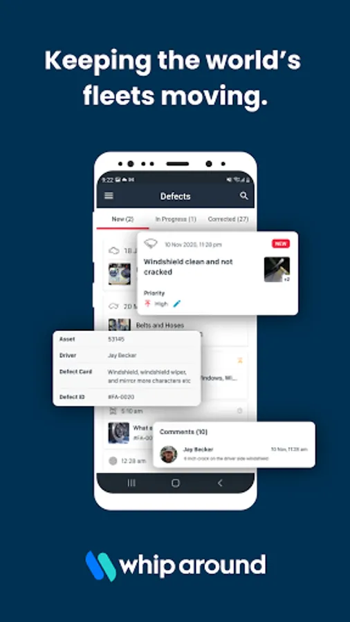 Conduct fleet inspections, manage work orders, and monitor fleet health from anywhere: Whip Around’s free app puts our powerful fleet maintenance software in the hands of drivers, mechanics, and fleet managers. The Whip Around App allows your fleet staff to collaborate on fleet management and maintenance tasks while they’re on the go: so your fleet stays running smoothly—everywhere.