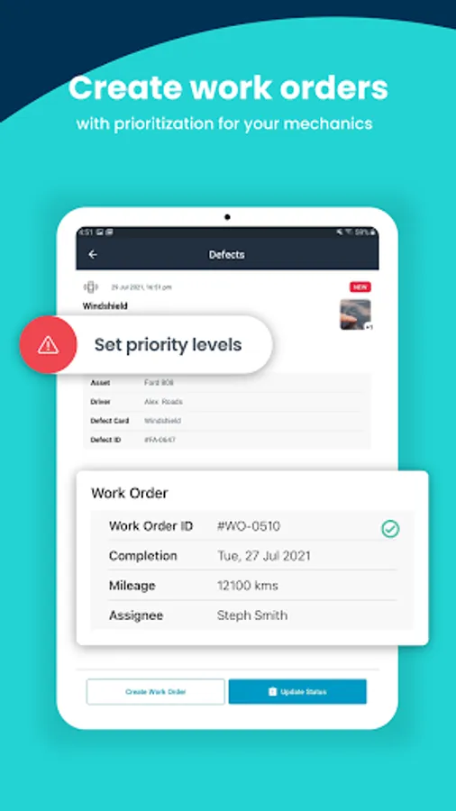The data drivers collect with the app powers the desktop experience where fleet managers can keep track of fleet-wide defects, monitor work orders, and observe updated driver and asset leaderboards. The aggregated data also feeds into Whip Around’s maintenance dashboard so mechanics can monitor defects, work orders, and parts inventory.