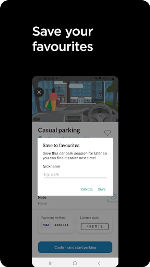 · Favourites – if you park in the same car park often, you can set up a specific car park or session as a favourite and start a parking session each day with only three touches