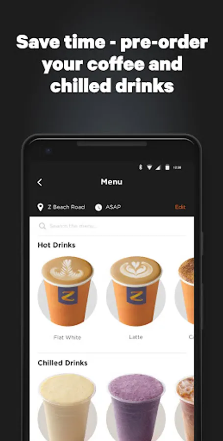 • Pre-order barista-made coffee, hot and chilled drinks from our Z Espress range