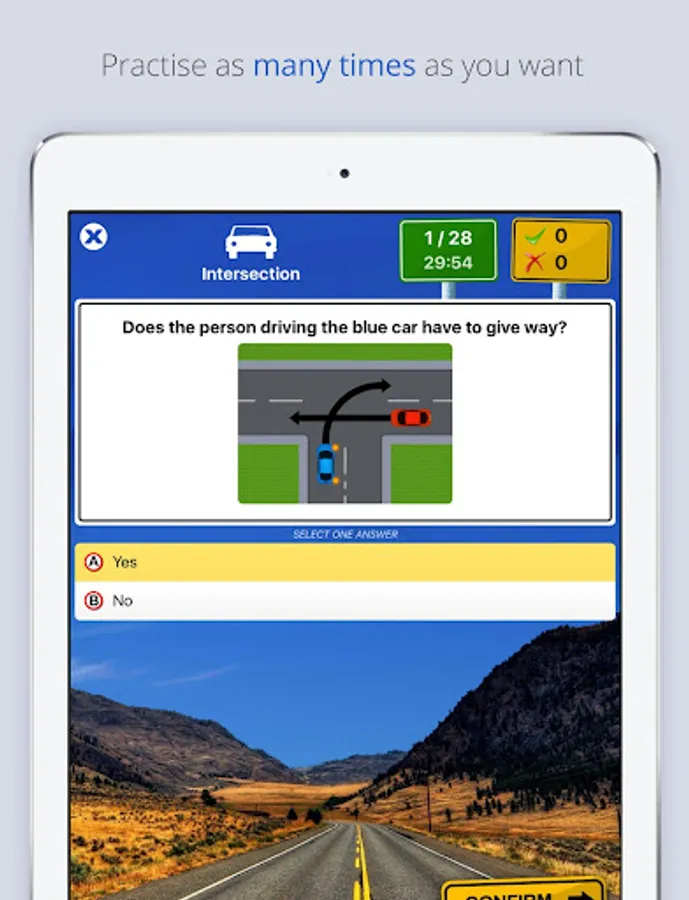 Now you can practice for your theory test anywhere and anytime with questions that are similar to the ones you'll find in the actual test.