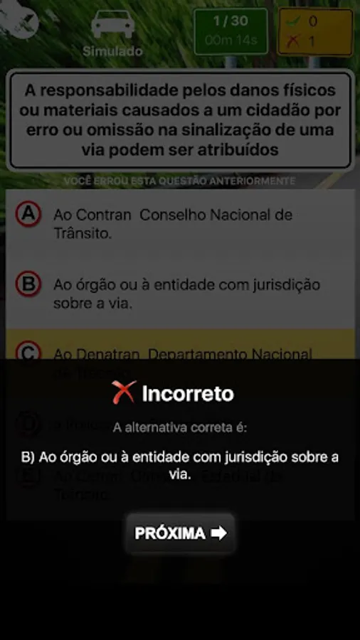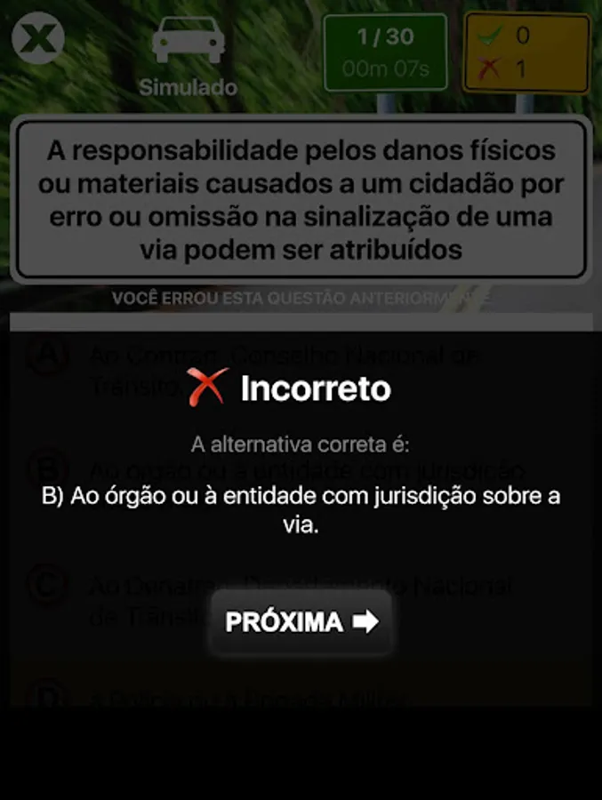 This is the official simulation mode, where 30 questions are randomly selected and you must hit the 21 to pass the test.
