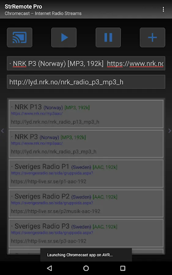 – Custom Internet Radio stream playback via the AVR's built-in Chromecast Audio feature.