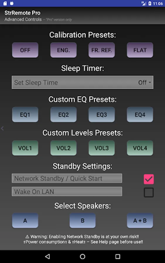 – If 'Network Standby' is not enabled (this is default for EU models) please wait at least 1 minute after manually powering on your AVR before using the app.