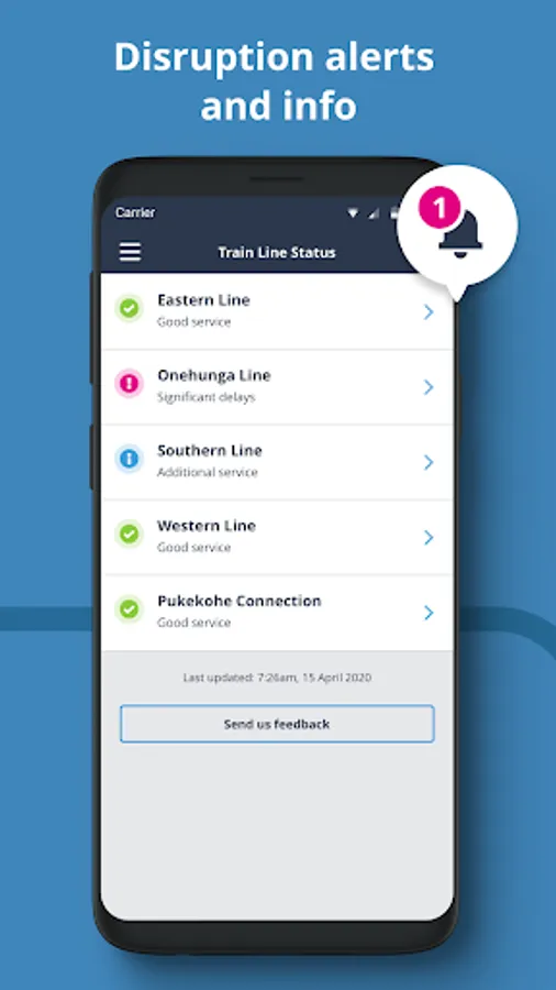 Disruption alerts and info - Want to be kept up to date when services change? We’ll let you know when your frequently used routes or stops are disrupted, based on your travel using registered AT HOP cards. Or you can subscribe to the specific routes you use, at the time of day you usually travel.