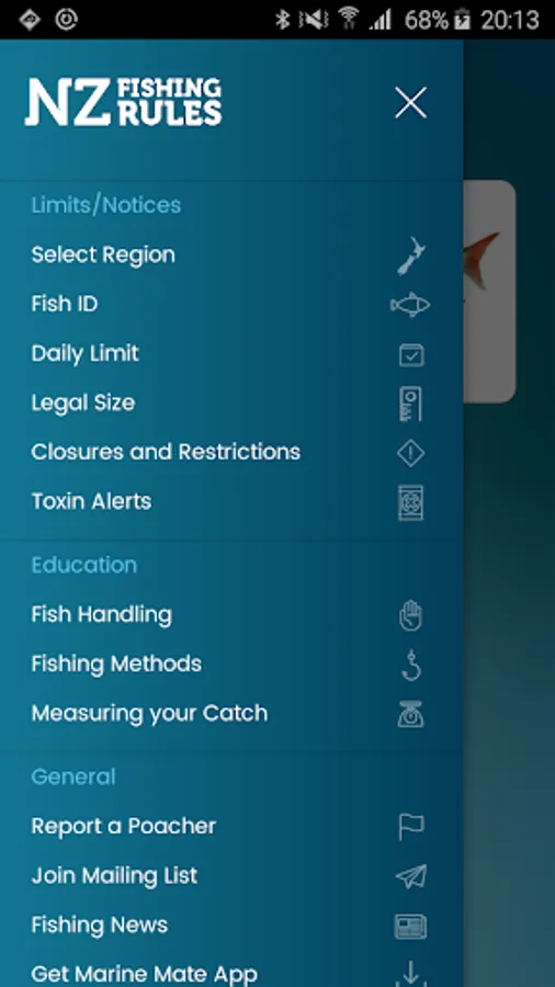 Get recreational fish species information on the go with the NZ Fishing Rules App. The application helps you to identify recreational fish species common in your area through images, then displays relevant information such as the minimum legal size, maximum daily limits and area bag limits. Short videos embedded within the application show how to release undersize fish correctly and also how to measure/determine the sex of crayfish. Local notices will give you updates on any temporary closures in the area.