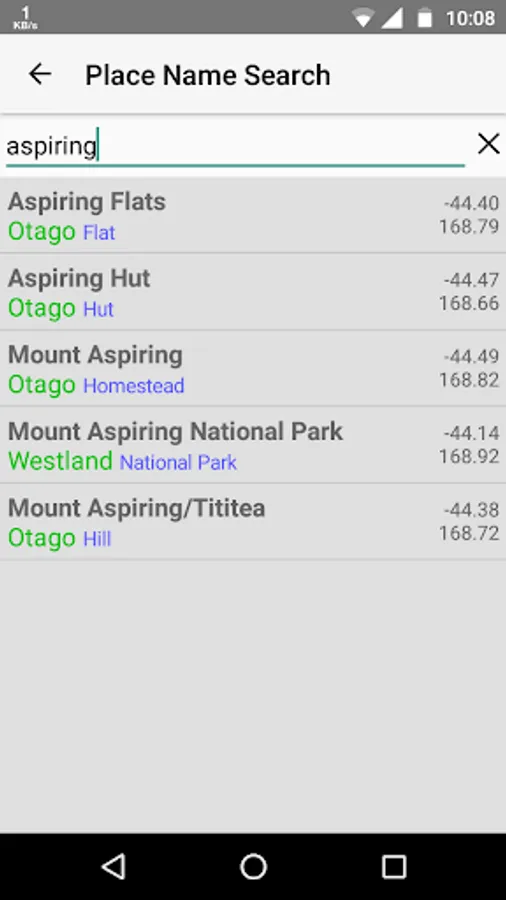 • Search for geographic features, towns, mountain huts and homesteads in NZ, vector map features including streets in all countries.